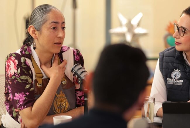 Para ello se contó con la presencia de Rocina Rentería Rosales, emprendedora participante en el Pabellón de la Gente (empresa Artisalis); Jesús Ramírez Martínez, emprendedor participante en el Pabellón de la Gente (empresa Serramía); y Sara Arvizu Rico, cocinera tradicional y emprendedora participante en el Pabellón Guanajuato Sí Sabe, quienes compartieron sus experiencias para posicionar sus proyectos en el mercado nacional e internacional.