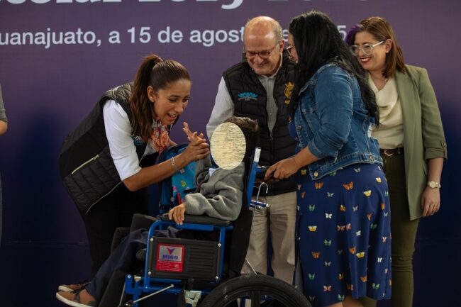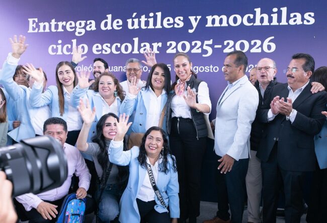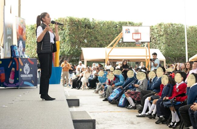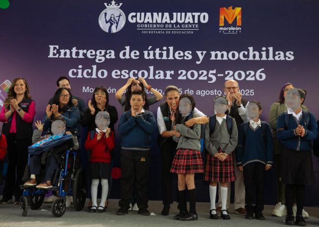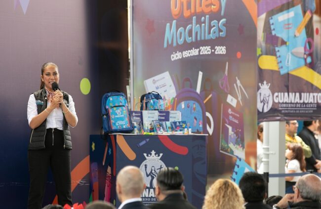“En Guanajuato queremos que nuestras niñas y niños estén en las aulas, que sigan estudiando. Hoy los quiero invitar, papás, mamas, a que hagamos equipo por la educación de nuestras hijas e hijos”, dijo la Gobernadora de la Gente, Libia Dennise García Muñoz Ledo, al entregar mochilas y útiles escolares a estudiantes para el Ciclo Escolar 2025-2026.
