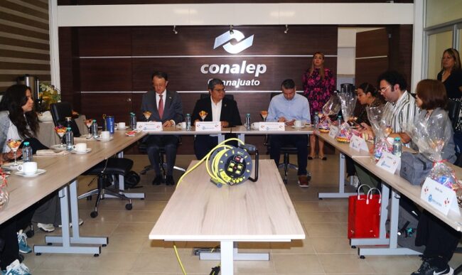 La recepción oficial se llevó a cabo en las oficinas centrales del Colegio Nacional de Educación Profesional Técnica (CONALEP) Guanajuato, en el Puerto Interior, donde su director general, Nicolás Gutiérrez Ortega, destacó el trabajo de la institución en el área tecnológica y su reconocimiento a nivel local, nacional e internacional.