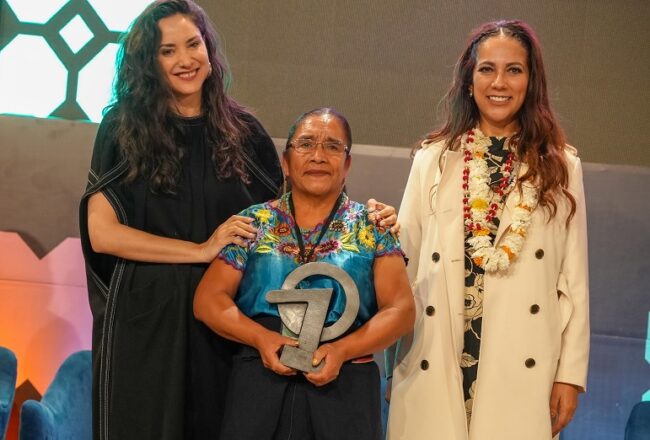Durante la ceremonia se reconoció el talento de una mujer indígena tsotsil; escritora, dramaturga, actriz y directora de teatro en lengua indígena. La Maestra Petrona de la Cruz Cruz; recibió la Presea Cervantina, máximo galardón de nuestro Festival.