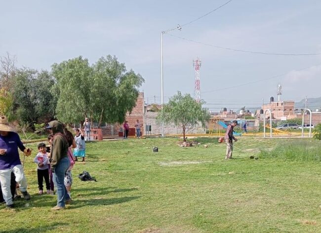 En el fin de semana que se tomó la decisión conjunta de intervenir con el programa ‘Aquí Presente’ en la colonia Panorama en la zona del parque, donde 15 personas mayores de edad y 2 menores de edad de la colonia apoyaron el trabajo de personal de Servicios Públicos Municipales, juntos hicieron la limpieza y quitaron hierba, como basura, retirada en 2 camionetas de 3.5 toneladas de capacidad.
