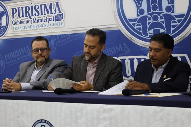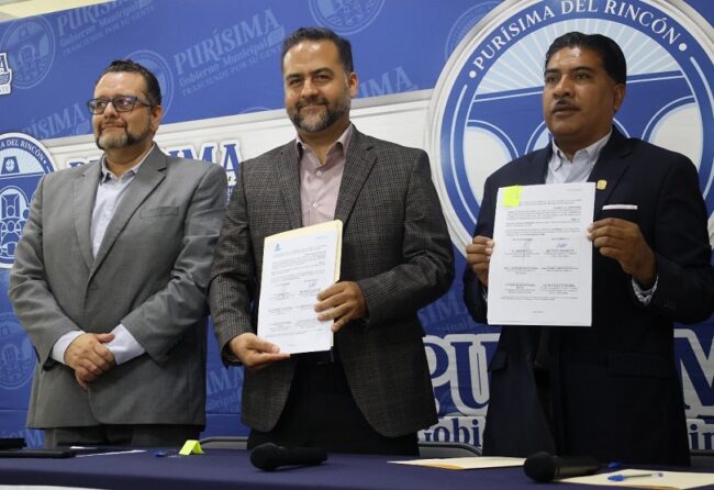 El Presidente Municipal de Purísima del Rincón, Roberto García Urbano, formalizó la firma del convenio de colaboración con el Secretariado Ejecutivo del Sistema Estatal de Seguridad Pública (SESESP) para acercar al municipio el servicio del Registro Público Vehicular (REPUVE), una herramienta clave en la prevención y combate al robo de vehículos.