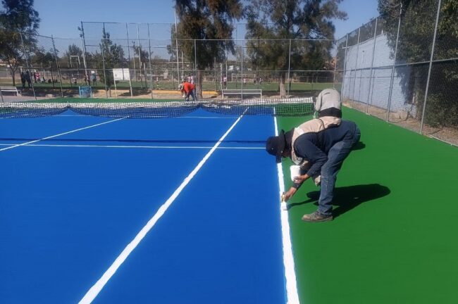 El director de la Comisión Municipal del Deporte (COMUDE), Juan Pablo Verdín, dijo que la remodelación en la cancha de tenis recibió la aplicación de sello negro en el área de juego, y posteriormente el cubrimiento de la cancha con sus delimitaciones; en la cancha de tenis la inversión es de 252 mil pesos.