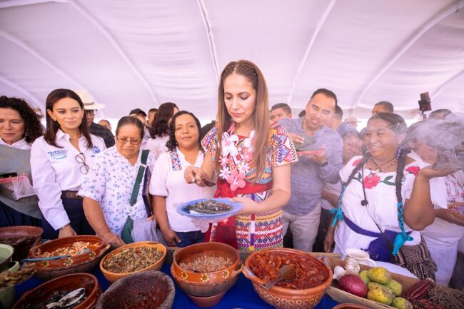 Al finalizar la ceremonia, la Mandataria Estatal degustó la gastronomía tradicional de la región y recorrió la exposición de artesanías y productos elaborados por los pueblos originarios. Además, en el escenario se celebró el Encuentro Estatal de Danzas,