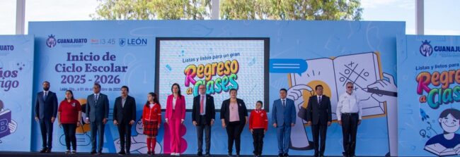Inició en Guanajuato el Ciclo Escolar 2025–2026 con el regreso a clases de más de un millón 200 mil estudiantes en 10 mil 544 escuelas, acompañados por la vocación y compromiso de más de 55 mil maestras y maestros.