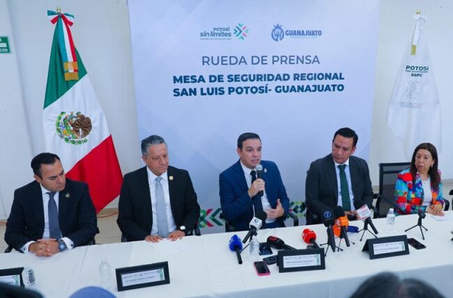 Autoridades de Guanajuato y San Luis Potosí, realizaron la primera mesa de trabajo regional en materia de seguridad pública para dar seguimiento al convenio entre ambos estados, en el que se establecen diversas acciones de inteligencia y trabajo operativo interestatal.